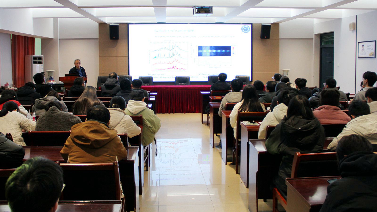 应学院邀请,中国科学技术大学陈京教授于12月28日做了题为《强激光场下里德堡态激发的量子模型》的学术报告。报告会由副经理刘墨林主持,部分教师、研究生及本科生聆听了报告。