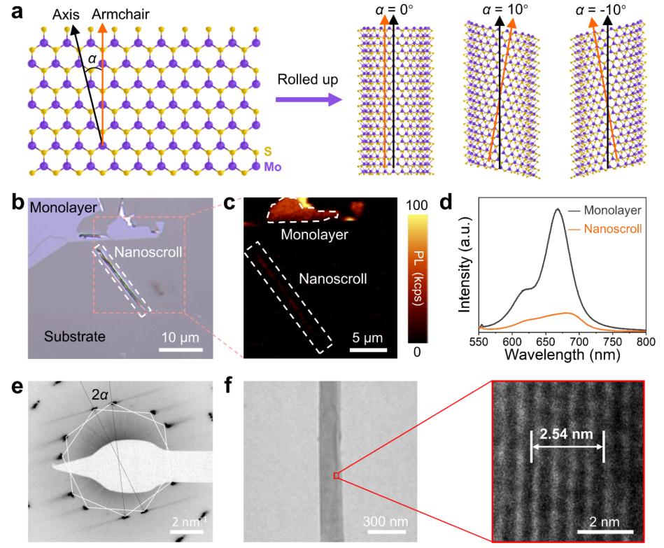图1:二维过渡金属硫化物MoS2的纳米卷结构与实验样品。